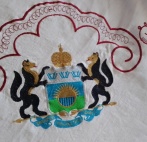 Скатерть. Цвет - белый. Ткань - хлопок 100%. Кайма из красной ткани. Элегантный дизайн, по углам расшито символикой Тюменской области «Сибирью прирастать будет". Размеры: ширина 158 см, длина 214 см. Рекомендую коллекционерам. А также можно использовать для проведения домашних традиционных праздников. Пишите в WhatsApp, Telegram.