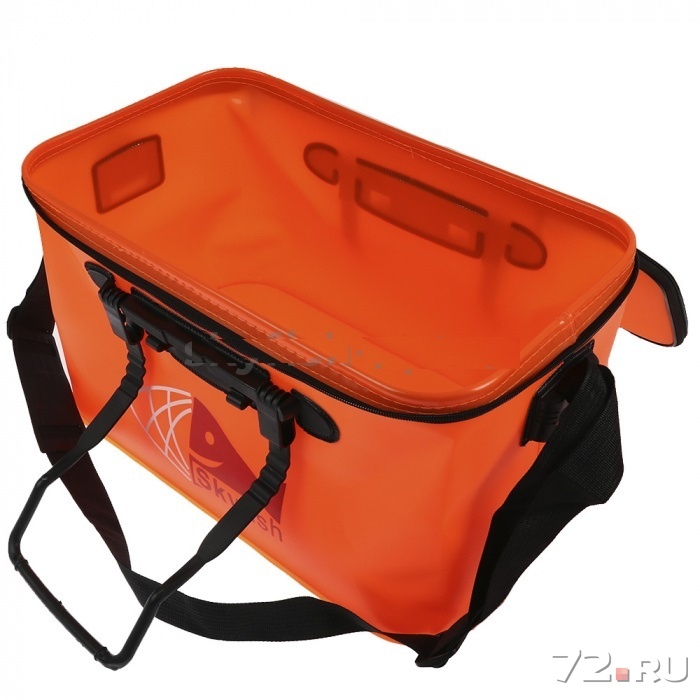 Изготовлена из материала ЭВА, который устойчив к разрыву и истиранию. Вентиляционное отверстие на крышке помогает улучшить поток воздуха для раб. Удобная линейка поможет узнать размер пойманного трофея. Двухсторонняя застежка-молния легко открывает или закрывает сумку. Регулируемый плечевой ремень и ручка обеспечивают удобную переноску. Сумка складывается в компактный размер для удобного хранения и перевозки.