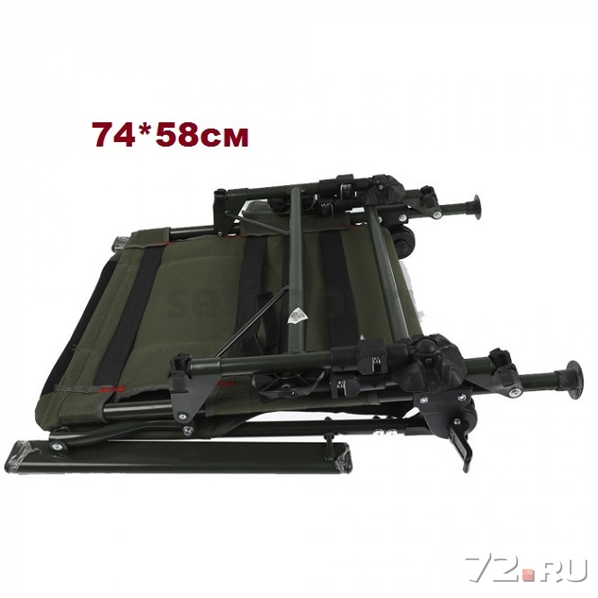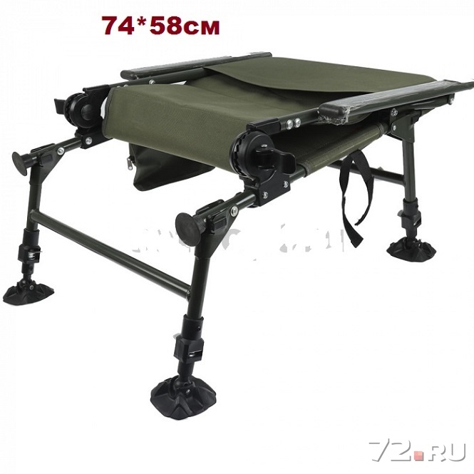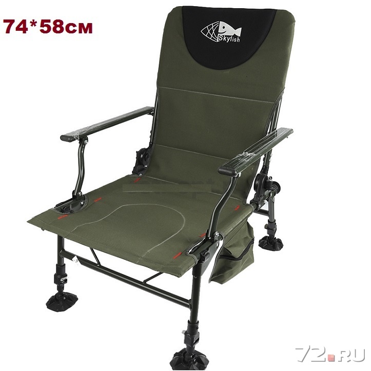 SkyFish - комфортное, раскладное кресло, которое станет незаменимым атрибутом на рыбалке. Конструкция кресла весьма прочная, рама изготовлена из легкого, металлического сплава, синтетическая ткань спинки и сиденья — износоустойчивая (оливкового цвета), подлокотники выполнены из ударопрочного пластика. Используя выдвижные ножки телескопической конструкции можно быстро выставить нужный уровень сиденья независимо от места лова. В результате, кресло всегда будет стоять ровно — на наклонной дамбе, каменистом побережье или на склоне реки. Благодаря шарнирно прикрепленным к ножкам широким пяткам, кресло можно устанавливать даже на мягком грунте, ножки не будут в него проваливаться. Самозажимные фиксаторы надежно удерживают ножки в выдвинутом положении. Вдобавок, кресло способно трансформироваться в удобный лежак. Наклон спинки регулируется в широких пределах, что дает возможность выбрать оптимальное положение. В сложенном состоянии кресло занимает мало места. Кресло SkyFish станет отличным выбором, как для фидера и поплавочной ловли, так и для отдыха на природе.