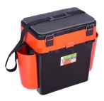 Материал - морозоустойчивый, ударопрочный пластик, который не впитывает и не пропускает воду. Пластик не подвержен деформациям и прекрасно удерживает первоначальную форму ящика даже при значительном весе рыбака. Максимальная нагрузка на ящик – 130 кг. Ящик из такого пластика не впитывает запахи и легко отмоется от рыбной слизи, глины и других загрязнений.