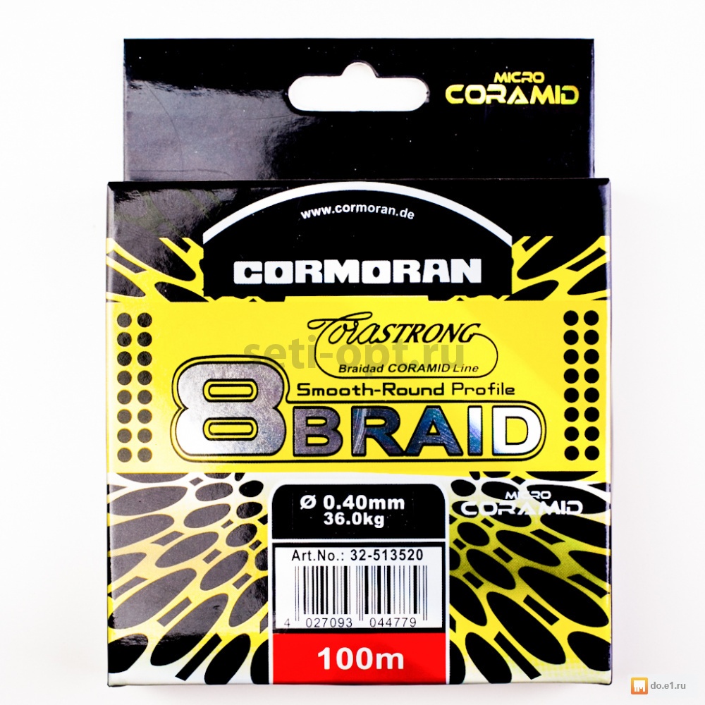 Шнур плетеный Cormoran "8 braid" 100 метров, цвет желтый