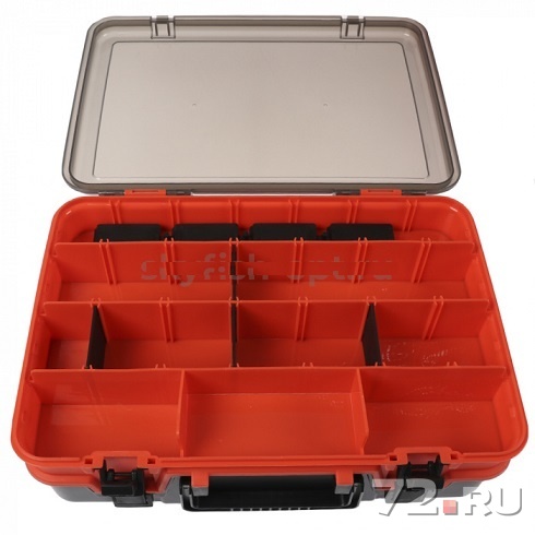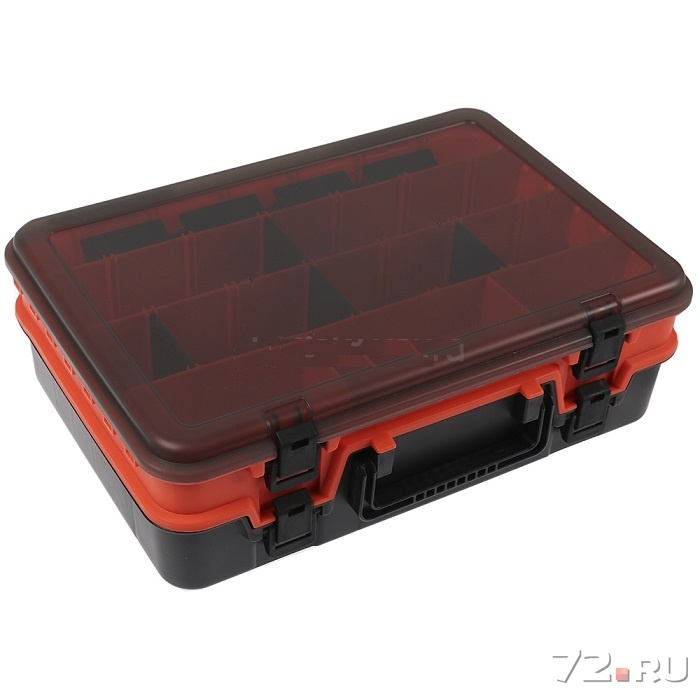 Коробка для приманок, двухсекционная – это универсальный ный ящик, для хранения приманок и аксессуаров. В нем предусмотрено два уровня, которые плотно закрываются на специальные усиленные защелки. Верхняя крышка выполнена из ударопрочного пластика. В ящике предусмотрено несколько отсеков, которые регулируются съёмными перегородками.