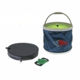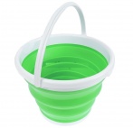 Универсальное складное ведро состоит из пластиковых дна и горловины с ручкой. Остальная часть ведра изготовлена из прочного качественного силиконового материала. Ведро компактное, легко складывается, что упрощает его транспортировку. Благодаря своим свойствам, ведро может применяться в рыбалке, в походе, на даче и т.д.