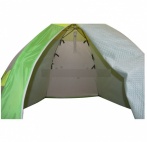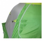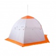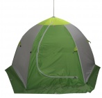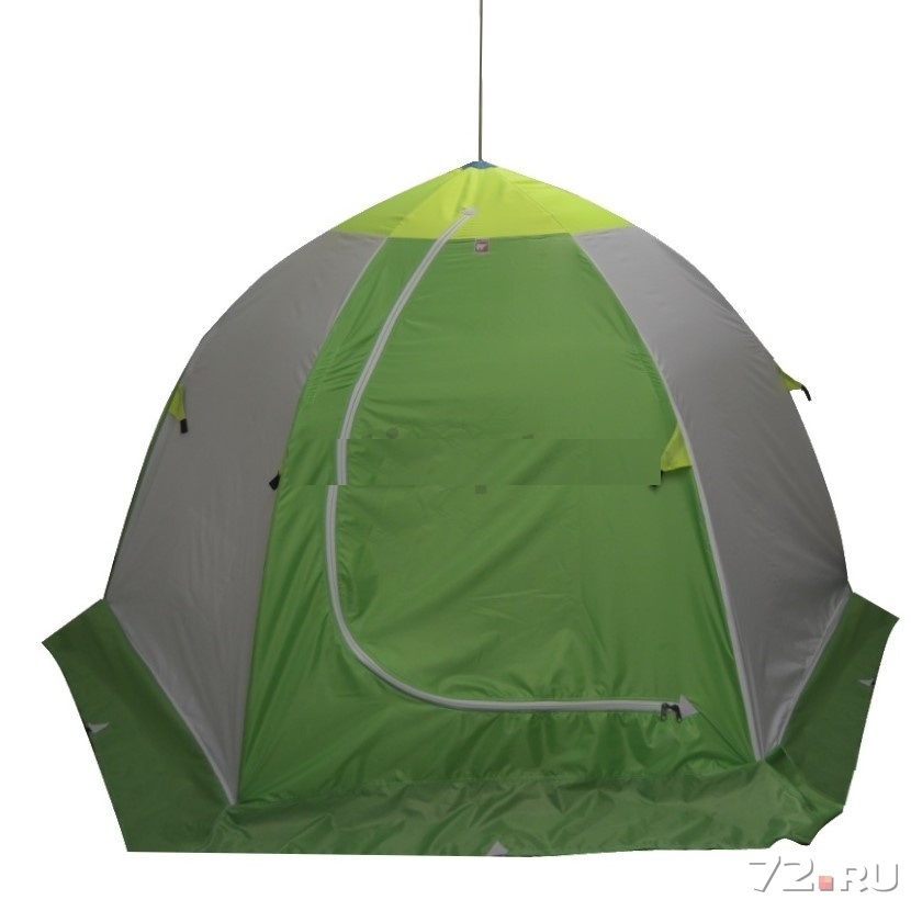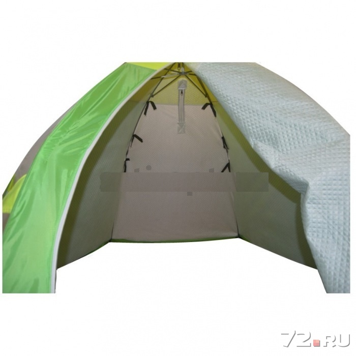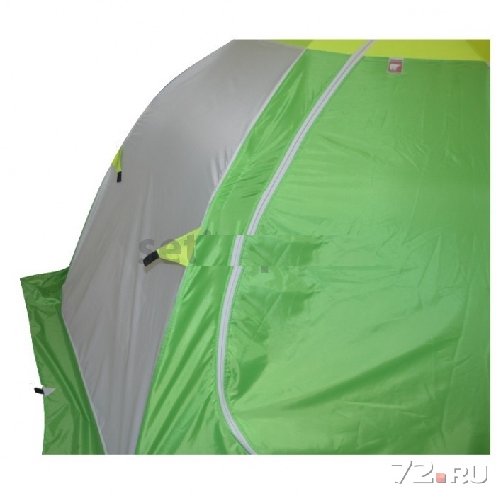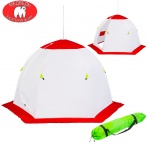 Данная модель палатки имеет шести-лучевой прочный каркас, двухслойный не продуваемый тент, с дышащим брезентовым верхом, для более комфортного пребывания при газовом и бензиновом отоплении. Верх — ткань Оксфорд, внутренний слой дышащий — натуральная ткань (габардин) и между ними слой синтепона. Надежные, мощные молнии входа. Время установки этой палатки не более двух минут. Крепление ко льду осуществляется с помощь