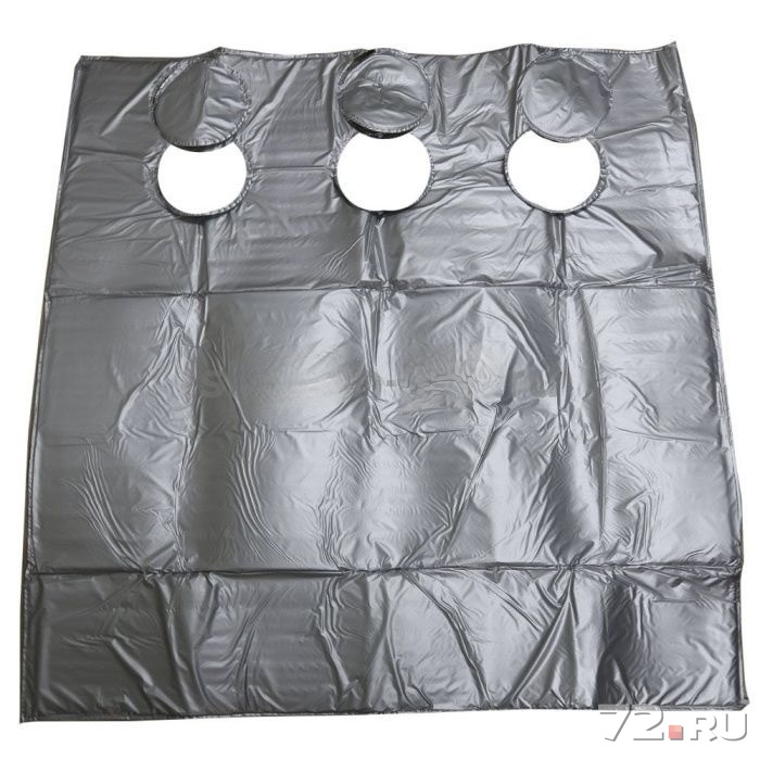 Пол для зимней палатки изготовлен из утеплителя ( изолон), толщиной 10 мм. Снаружи обшит плотной и прочной тканью. Отверстия для лунок имеют круглую форму и оснащены клапанами. По углам ленточные петли для крепления.