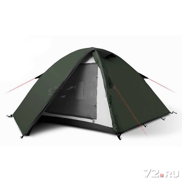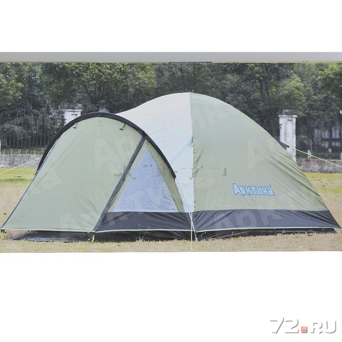 Все швы проклеены. Тент обладает высокой водонепроницаемостью 3000 мм водяного столба. Москитная сетка идет по всему периметру шатра. В комплект входит водонепроницаемый чехол с переносными ручками и компрессионными ремнями. Колья и дуги хранятся в отдельных чехлах.
